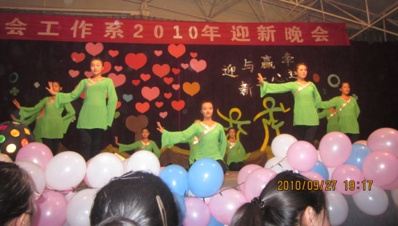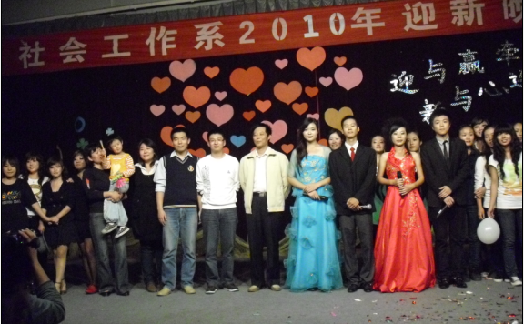 2010年9月27日晚7:00,社會工作系在我院多功能廳舉行“迎與贏牽 新與心連”為主題的2010年迎新生晚會。社會工作系主任李志率領全系老師出席晚會現(xiàn)場。
