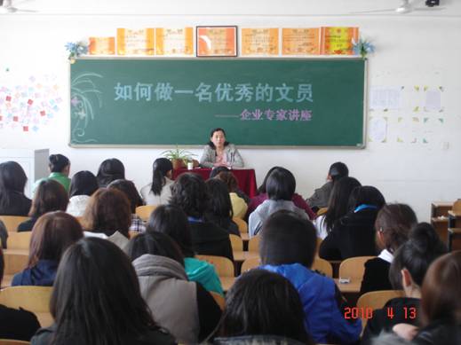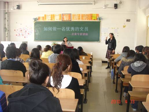 根據近年就業情況及專業實際,為使文秘、法律專業學生更好的了解辦公室文秘工作的狀況、加強崗位認識,明確文秘相關崗位對人才在素質、能力等方面的要求,從而使學生能充分規劃在校期間的學習生活,更好地面對專業挑戰,4月13日下午,法律文秘教研室邀請石焦集團辦公室主任張文靜女士作了以“如何做好辦公室工作、當一名優秀的助手”為主題的專題講座。講座在教學樓413教室舉行,法律文秘教研室部分教師及08、09級學生參加了本次講座。 張文靜女士熱情的向同學們介紹了辦公室工作的主要內容,并根據自已二十多年的工作經驗,結合實際的案例,就如何寫好文字材料、如何組織會議、如何做好接待工作、如何進行單位檔案管理及上述各項具體工作對人員在素質、能力的要求進行了深入的講解。此外,張文靜女士還特意強調“好習慣與陽光心態”對做好文秘工作的重要性,并指出要當一名好助手需注意的事項:一頭腦反應要快、辦事要迅速;二不要搬弄是非;三忌多頭請示、越級請示;四要具備很好的保密意識;五不要自命清高;六要加強協調能辦;七要保持良好的心態;八要注意單位形象的宣傳。報告結束后,張文靜女士又與學生進行了互動交流,對同學們提出的問題進行了詳細的解答。講座在同學們熱烈的掌聲中結束。