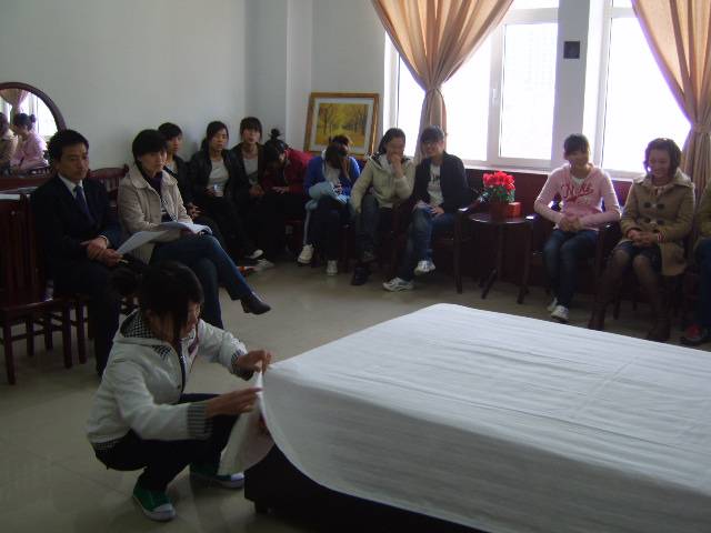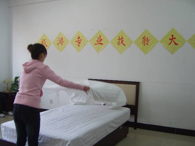 此次大賽從初賽到復賽歷經一周的時間,比賽的主要內容是客房中式鋪床操作技能,同學們嫻熟的動作,優美的姿態充分的體現了良好的崗位氣質,最后吳丹丹等同學分別獲得一、二、三等獎。我系教學副主任安老師,旅游專業的各位老師作為此次比賽的評委,給予了各位比賽選手很好的評價,希望同學在再接再厲,迎接更大的挑戰。