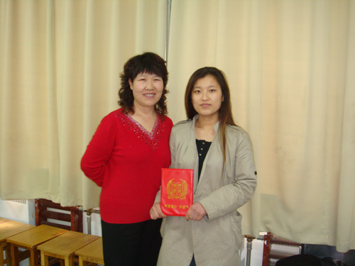 金獎獲得者薛珍珍與輔導教師胡芳老師合影