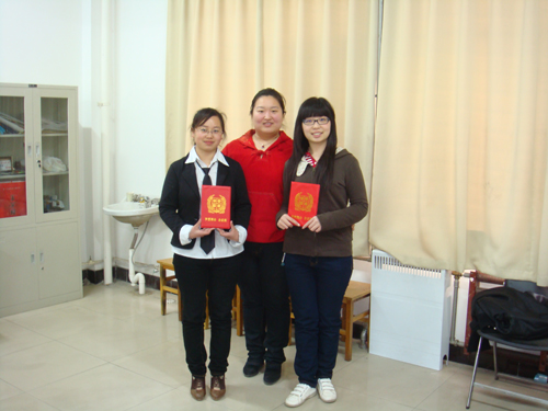銀獎獲得者李媛、梁萌與輔導教師王連悅老師合影