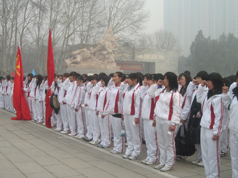年年清明節(jié),歲歲祭忠魂。3月30日下午,藝術(shù)設(shè)計(jì)系09級全體同學(xué)懷著崇敬之情,戴著自己親手制作的小白花,來到了華北革命烈士陵園,緬懷先烈,寄托哀思。