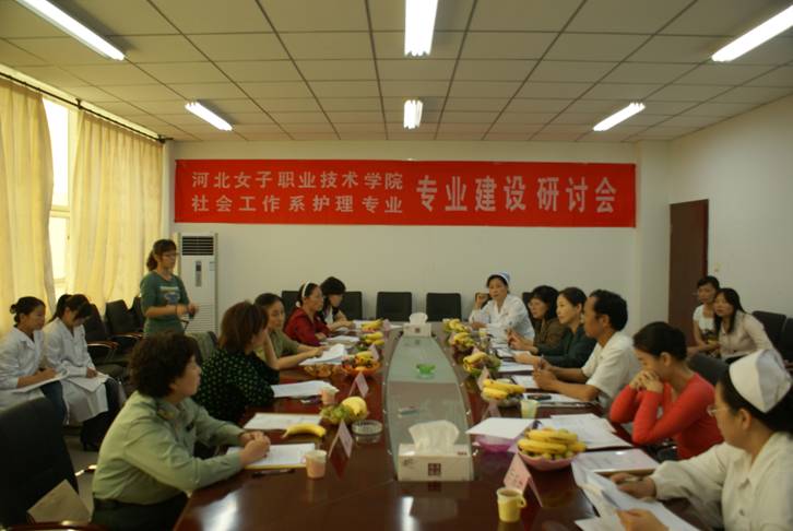 為進(jìn)一步明確護(hù)理專(zhuān)業(yè)人才培養(yǎng)目標(biāo)與專(zhuān)業(yè)定位,加強(qiáng)護(hù)理專(zhuān)業(yè)教學(xué)團(tuán)隊(duì)建設(shè)和校內(nèi)實(shí)訓(xùn)室建設(shè),建立校企合作育人的人才培養(yǎng)機(jī)制,有效解決護(hù)理專(zhuān)業(yè)學(xué)生的實(shí)習(xí)和就業(yè)問(wèn)題, 2009年9月18日,社會(huì)工作系隆重舉辦護(hù)理專(zhuān)業(yè)第二屆專(zhuān)業(yè)建設(shè)研討會(huì)。河北醫(yī)科大學(xué)第二醫(yī)院副院長(zhǎng)、河北省醫(yī)協(xié)副主席趙玲教授、河北醫(yī)科大學(xué)護(hù)理部主任陳海英教授、白求恩軍醫(yī)學(xué)校基礎(chǔ)護(hù)理教研室主任劉軍教授、河北醫(yī)科大學(xué)第三醫(yī)院護(hù)理部副主任、教務(wù)處長(zhǎng)趙書(shū)娥女士、河北醫(yī)科大學(xué)王桂英教授、我院特聘教師白求恩國(guó)際和平醫(yī)院婦產(chǎn)科張進(jìn)護(hù)士長(zhǎng)和石家莊市第一醫(yī)院護(hù)理部任慶茹主任應(yīng)邀出席本次會(huì)議。我院黨委書(shū)記王靜同志、王振杰院長(zhǎng)、教務(wù)處處長(zhǎng)徐愛(ài)新同志、社會(huì)工作系主任胡英娣同志參加了本次研討會(huì)。