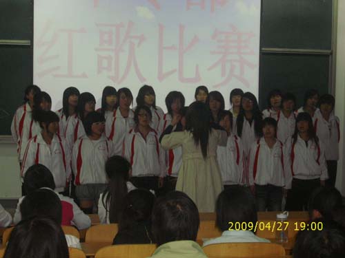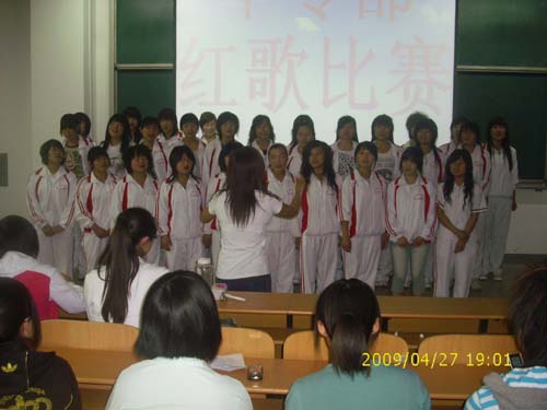 于4月24日晚7:00在圖書館107展開了選拔賽,邀請學(xué)院團(tuán)委五評(píng)委參加。07、08級(jí)四個(gè)班級(jí)中07中一在比賽中選題好,聲音洪亮,指揮領(lǐng)唱等方面比較突出,最終在院團(tuán)委五名評(píng)委評(píng)判下獲得第一名。為學(xué)院的決賽提前做好了紅歌比賽的選拔工作。