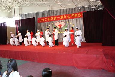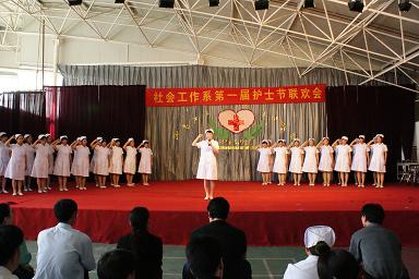 為慶祝5.12國際護士節,2009年5月12日社會工作系舉辦了主題為“愛心天使,活力飛揚”的第一屆護士節聯歡會。聯歡會于5月12日下午2:30在食堂四樓多功能廳開幕,校領導王靜書記、王振杰院長、徐愛新處長等,河北醫科大學王桂英教授、張邊江教授、王懷福教授,和平醫院護士長張進女士、武警總隊醫院護士長李麗女士、市第一醫院護士長任慶茹女士、卓達高級職業技術學校郭鐵海校長等專家作為嘉賓出席了聯歡會。首先社工系主任胡英娣主任為本次活動致辭,護理專業學生代表發言。之后,與會嘉賓為學生代表們授帽,全體護理專業學生莊嚴的宣誓南丁格爾誓言,護理專業學生為觀眾表演了護士禮儀。社工系教師、護理專業學生和其他專業學生表演了豐富的娛樂節目。聯歡會于4:30圓滿結束。