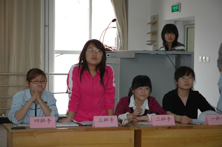評 委:紀檢部部長趙美榮、生活部部長李敏、秘書處部長宮宇、學習部副部長陳安靜