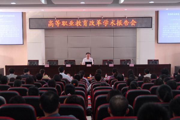 在我院學術報告廳,翟廳長為學院全體教職員工作了題為《高等職業教育:規律和可持續發展》的學術報告。