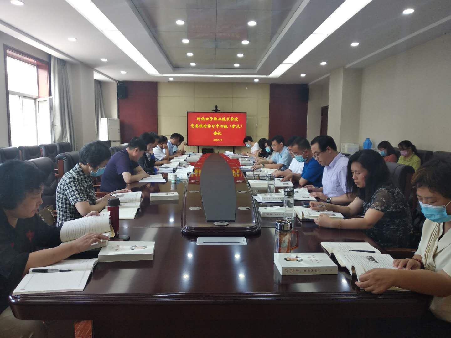 7月28日上午,河北女子職業技術學院在行政樓201會議室召開黨委理論學習中心組(擴大)會議,集中學習《習近平談治國理政》、《中國制度面對面》有關章節內容。會議由黨委書記郭麗萍主持,學院黨委班子成員、全體中層干部參加了會議。