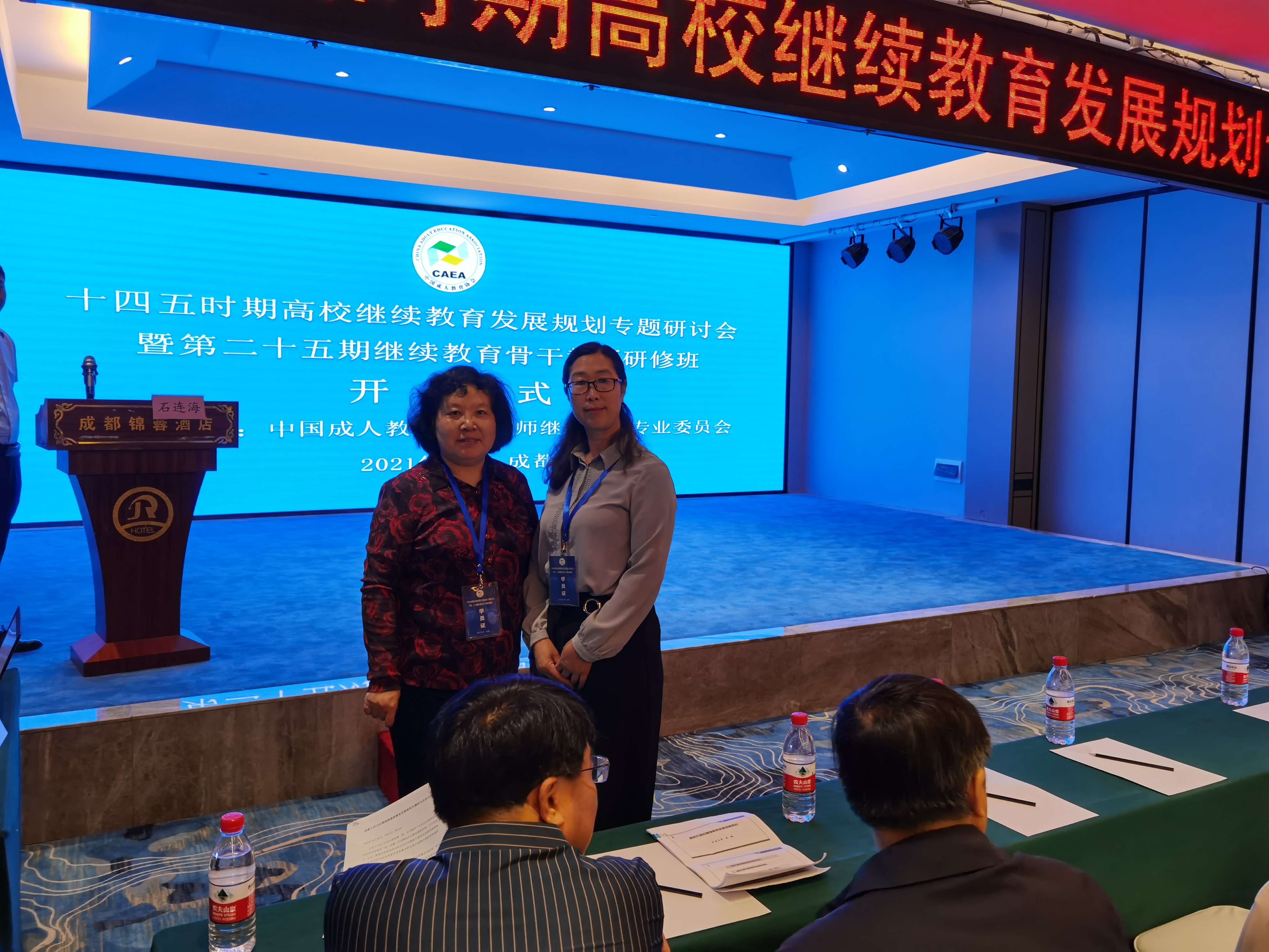 2021年5月24日-28日,由中國成人教育協會教師繼續教育專業委員會舉辦的“十四五時期高校繼續教育發展規劃專題研討會暨第二十五期繼續教育骨干教師研修班”在四川成都舉行,來自全國各高校繼續教育學院、網絡學院、高職高專、開放大學、電大、成人教育學院等單位校長、院長、書記、副院長以及各職能部門負責人和骨干教師約80余人參加了研修班。河北女子職業技術學院繼續教育學院院長胡英娣教授、賈素巧老師參加了本次研修班。