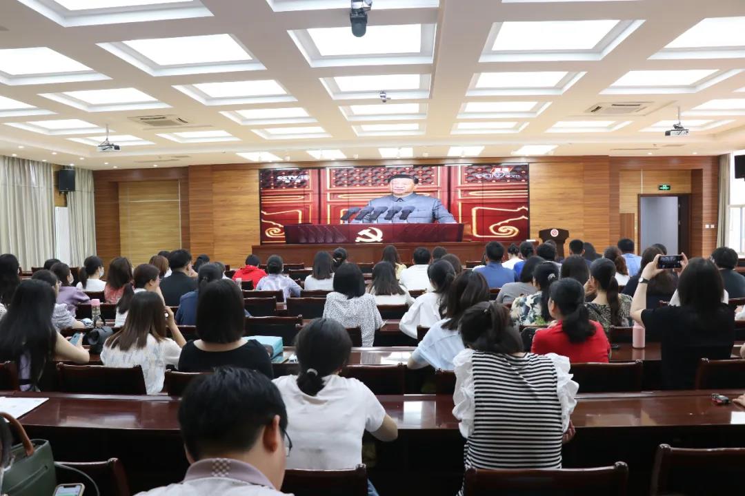 7月1日上午,河北女子職業技術學院召開第八次黨委理論學習中心組(擴大)會議,組織中層以上黨員干部在201會議室、教工黨員在新思維交流中心集中收聽收看慶祝中國共產黨成立100周年大會直播盛況,認真聆聽習總書記在慶祝大會上的重要講話,共慶中國共產黨百年華誕。