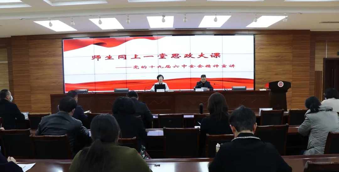 聚焦“怎樣學”,她強調,開展黨的十九屆六中全會精神的學習,是學院當前和今后一段時間的重大政治任務。一是要把學習全會精神作為重點內容、《決議》作為重點理論材料納入黨委理論學習中心組學習、專題讀書班、黨支部“三會一課”、主題黨團日等活動中;二是將全會精神學習納入各級黨員干部、教師、學生培訓的必修課程;三是廣大師生要通過讀原著、學原文,采用導學、自學、聯(lián)學、研學等多種形式的學習路徑和方法,原原本本學,逐字逐句讀,全面系統(tǒng)、完整準確把握黨的十九屆六中全會的核心要義、精神實質、實踐要求。