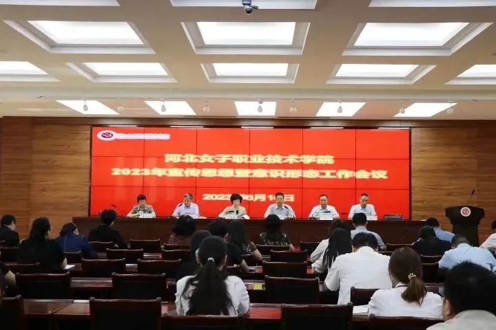 為學習宣傳貫徹習近平新時代中國特色社會主義思想和黨的二十大精神,推動學院宣傳思想工作、意識形態工作再上新臺階,6月16日上午,河北女子職業技術學院召開2023年宣傳思想暨意識形態工作會議,總結2022年工作,部署2023年重點任務,對宣傳先進集體和個人進行表彰。黨委班子出席會議,黨委書記郭麗萍作總結講話,會議由黨委副書記、院長麻士琦主持。