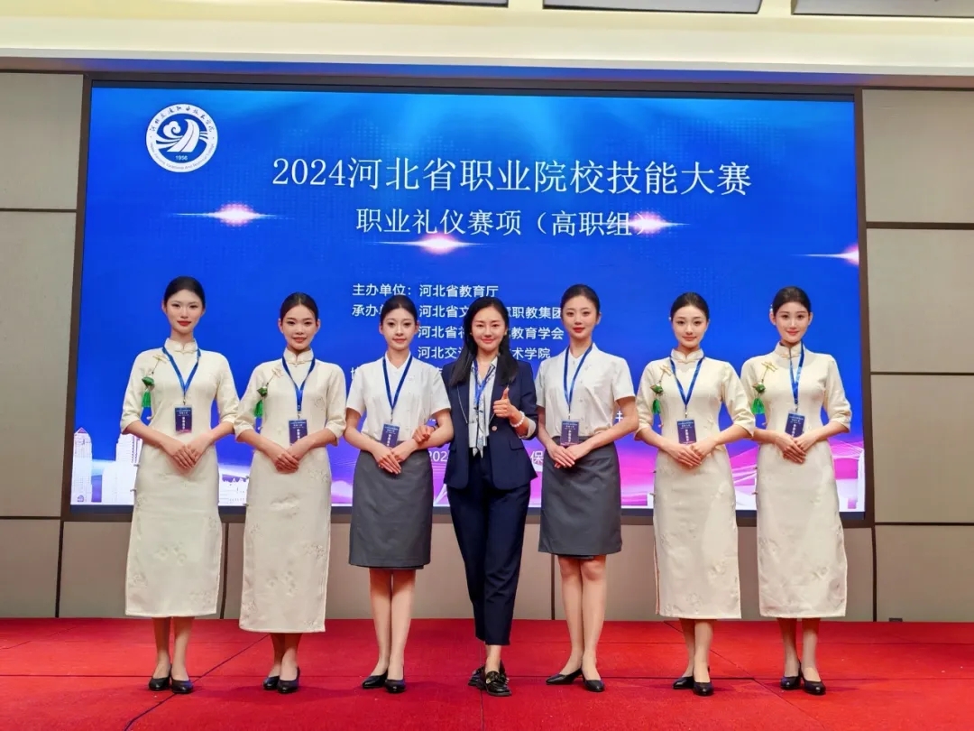 5月11至13日,由河北省教育廳主辦的2024年河北省職業院校技能大賽“職業禮儀”賽項(高職組)在保定舉行。此次比賽共吸引了河北省高職院校33支優秀隊伍同臺競技。學院現代服務系教師康永芳、趙慧銘指導的2023級乘務專業屠婳、劉禹彤、韓佳穎、呂佳蕊、姚雨辛、金靖宜同學榮獲 2024年河北省職業院校技能大賽職業禮儀賽項二等獎。