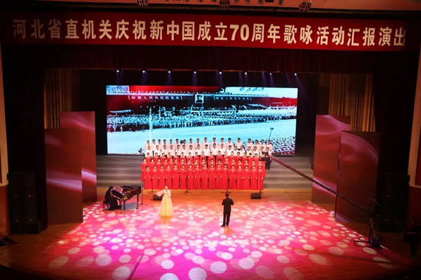 9月25日,由河北省直工委主辦的慶祝中華人民共和國成立70周年歌詠比賽在河北會堂大禮堂舉行。河北女子職業技術學院百人合唱團代表河北省婦女聯合會參加比賽,參賽曲目《我的祖國》獲得三等獎,并受邀參加了28日舉行的省直機關慶祝新中國成立70周年歌詠活動匯報演出。