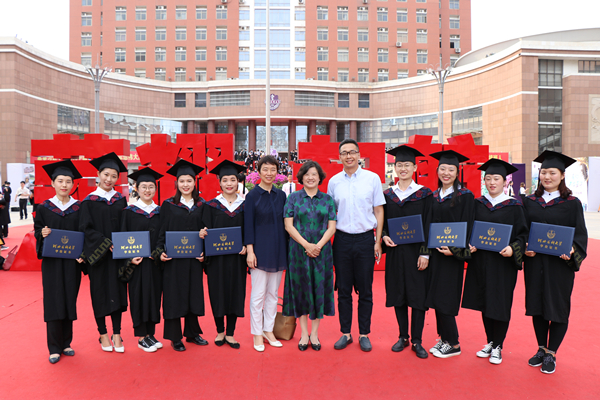 畢業典禮上,12名主禮教授為本科畢業生撥蘇正冠授予學位并頒發畢業證書;畢業生代表向主禮教授獻花;畢業生代表、教師代表、家長代表發言真摯感人。在女子學院就讀的2019屆護理學應用型本科實驗班23名同學全部順利畢業并獲得學士學位。畢業典禮上,他們一起分享歡欣和喜悅,感念師恩,共話同窗情、母校情。