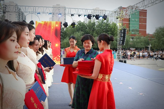 6月13日晚19:00,河北女子職業技術學院在學院廣場舉行“慶祖國盛世華年 譜青春時代頌歌”2019年畢業盛典。黨委書記郭麗萍、院長蓋春瑞、副院長董海鷹、副院長徐愛新、紀委書記趙志華、副院長李彥琴、黨委委員胡會來出席了本次活動;學院中層干部、教師代表、2019屆畢業生及在校生代表共同見證了這難忘的時刻。