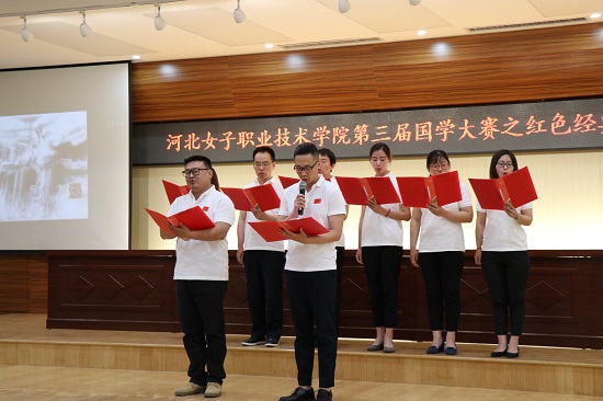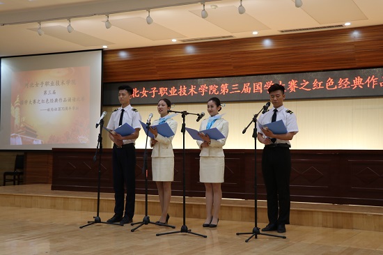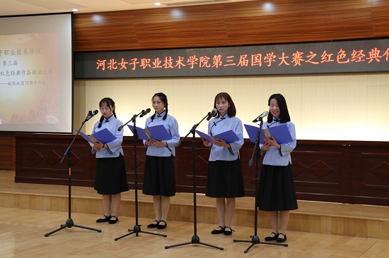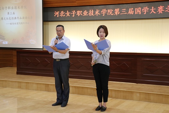 歲月如歌,風雨砥礪!值此新中國成立70周年之際,河北女子職業技術學院以誦讀經典為契機,繼承發揚愛國傳統,5月21日下午,學院馬克思主義學院聯合學院工會舉辦了“以誦讀經典,抒愛國情懷,致敬祖國70華誕”為主題的紅色經典作品誦讀比賽。學院黨委書記郭麗萍、院長蓋春瑞、副院長徐愛新、紀委書記趙志華出席了本次活動。學院各部門負責人、教師和學生代表參加了本次活動。