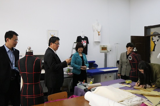 座談結束后,副院長李彥琴、國際交流中心主任王雪梅、藝術系主任徐超及相關人員陪同沈會長前往我院藝術設計系,參觀了我院藝術設計系實訓基地,并與相關專業教師對專業合作項目的具體內容進行了深度座談。