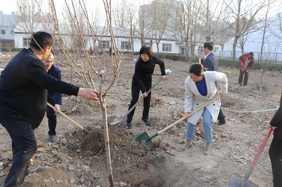 在植樹活動現場,所有黨員精神抖擻,充分發揮人民教師的奉獻精神,分工協調、通力合作,有條不紊地完成挖坑、栽樹、施肥、澆水、培土等各項工作。植樹間隙,郭麗萍書記、蓋春瑞院長與教職工邊勞動、邊交流,并叮囑教職工:十年樹木百年樹人,女子學院廣大教工要按照“立德樹人”的理念,在教育好學生的同時,把樹植好、扶正,搞好美化綠化工作,不斷美化綠化校園環境,為廣大師生提供更多安靜愜意的教學環境。