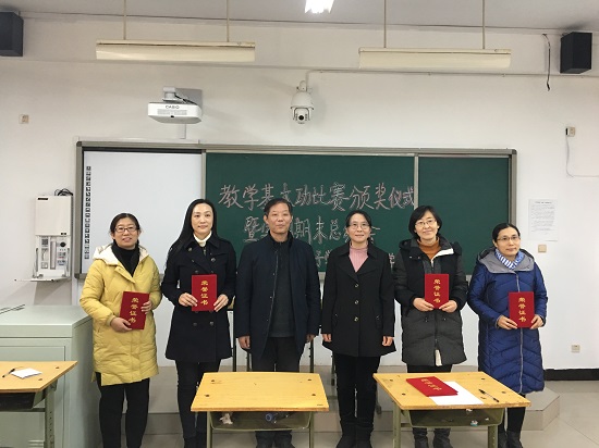 會議最后,李志主任向在教學基本功大賽中獲得一等獎、二等獎的教師頒獎,并鼓勵大家再接再厲,爭取更好成績!