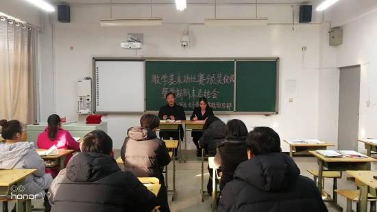 1月18日上午,基礎教學部在行政樓409召開教學基本功比賽頒獎儀式暨學期期末總結大會?;A教學部李志主任總結本學期工作,安排部署寒假期間工作。李素珍副主任主持會議,基礎教學部全體教師參加會議。