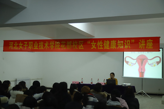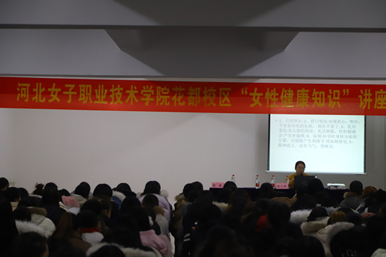 為貫徹落實省教育廳《關于進一步做好學校傳染病防控工作的通知》和《關于認真做好2018年“世界艾滋病日”宣傳教育活動的通知》的工作要求,進一步提高同學們對自身健康重要性的認識,增強自我保健意識和能力,養成良好的健康生活習慣,營造良好的校園健康環境,2018年12月7日下午,我院花都校區邀請石家莊市第五醫院婦產科主任醫師趙玉嬋為師生作了“魅力女生、健康同行”女性健康知識講座,花都校區270余名師生聆聽了講座。