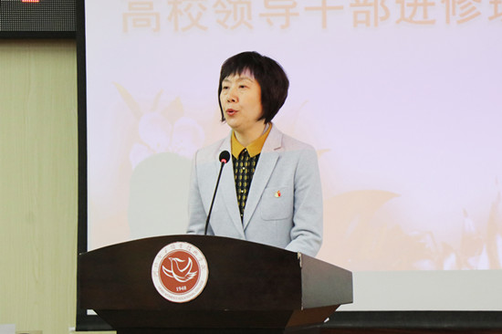 學院院長蓋春瑞介紹學院女性特色教育情況