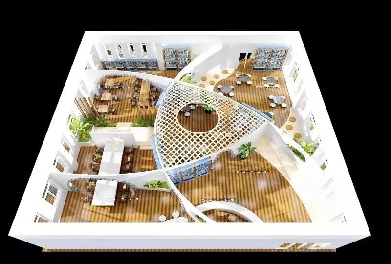 毓秀書苑分為綜合館和繪本館。綜合館設借閱及新書展示區(qū)、館藏精品圖書區(qū)、交流區(qū)、休閑閱覽區(qū)、學術研討區(qū);繪本館形似“花朵綻放”,體現學前教育專業(yè)特色,為專業(yè)發(fā)展提供資源支持,包含借閱區(qū)、活動區(qū),閱覽區(qū),兩個研討區(qū)。