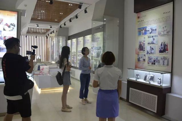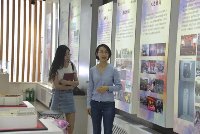 首先,學院官微主播劉春麗與河青主播一起來到學院女性特色文化展室。在這里,女性教育研究所胡婧超老師為大家講述學院發展歷程、辦學特色、校園文化、教育成果。