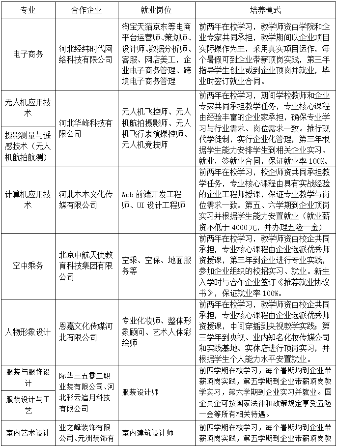 河北女子職業(yè)技術學院2019年招生專業(yè)訂單班