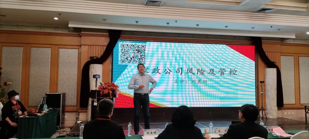 全國家政行業(yè)誠信聯(lián)盟秘書長、中國《家政之聲》雜志主編、晨陽大講堂創(chuàng)始人劉晨陽以《家政企業(yè)風(fēng)險(xiǎn)防范與控制》為題,做專題講座。