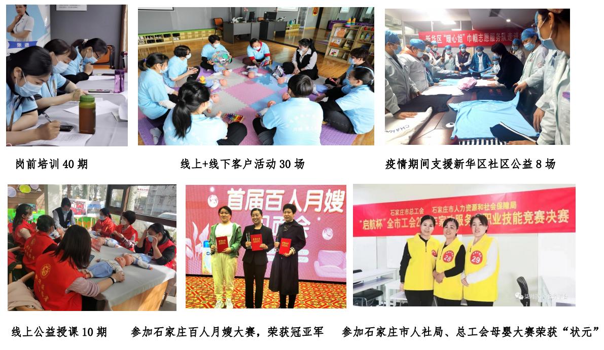 公司專注于將眾多資深月嫂的多年實踐經驗與先進的母嬰護理知識相融合,為孕產婦及嬰幼兒提供先進科學的護理服務和健康成長指導,讓每一位媽媽,每一位寶寶都能得到專業、全面、貼心的照護,先后研發出母嬰護理師、育嬰師實訓必會36項、母嬰護理師百問百答、家政員急救、崗前培訓回爐培訓、家政客訴案例100講、晉升通道、月子教練等產品。用規范化、職業化、系統化、標準化來服務于千家萬戶,并提供高品質、多元化的家政服務。