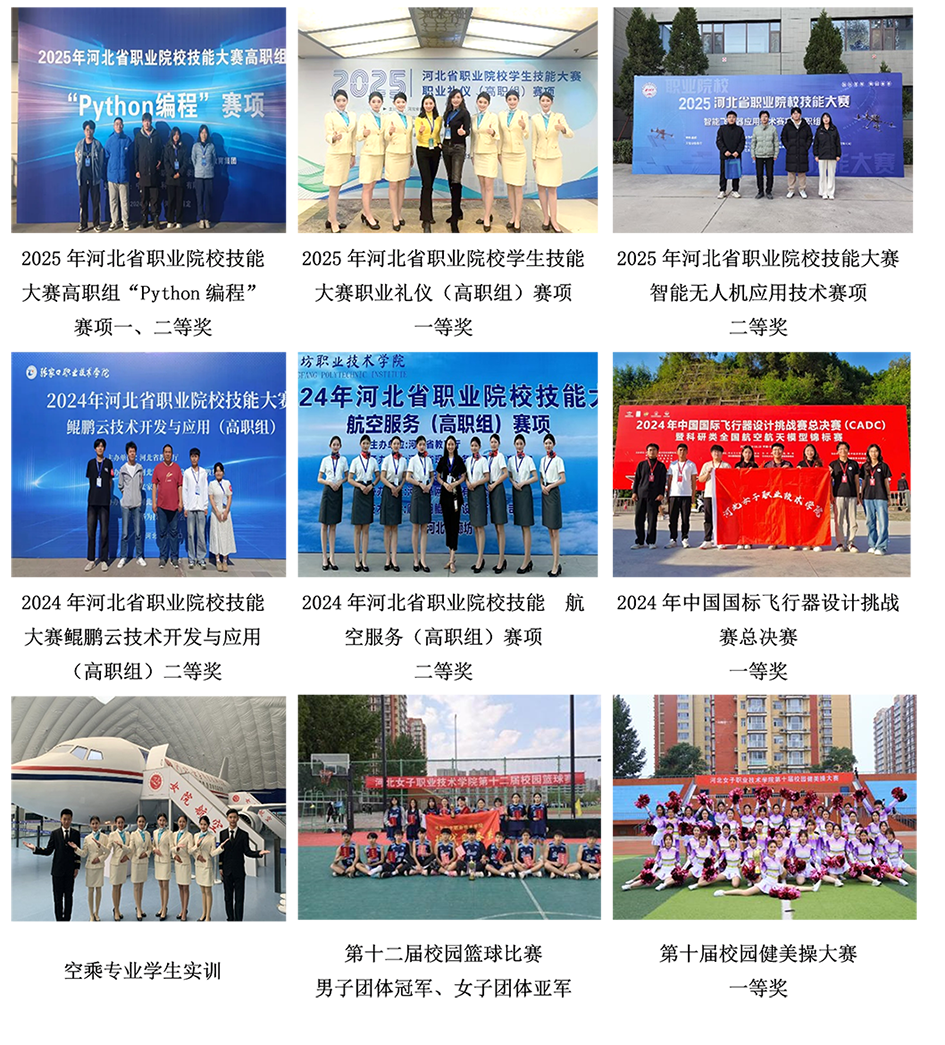 現代服務系秉承“以人為本,學生至上”的宗旨,深入推進教學改革,注重學生專業技能培養和綜合素質提升,全面提高人才培養質量,為學生搭建高端就業平臺。無人機應用技術專業與產業導師共建專業核心課、與行業協會共建專業必修課、與頭部企業共建專業選修課;采用工坊課模式第二課堂;開展“無人機+”社會服務第三課堂。與協會共建研發中心、博士創新工作站;與頭部企業共建生產性實訓基地;以“六室三隊”為載體,培養高素質、高技能、高技術的產學研用綜合性專業人才,與行業深度融合,推動專業發展,賦能產業升級;計算機應用技術專業擁有結構合理、較高教學水平和豐富的實踐能力、高學歷雙師型教學團隊,建有省級精品課程一門和校級精品課程兩門,并細化人才培養方向,以賽促學,屢次榮獲省級大獎;乘務專業學生遍布國航、南航、海航、河北航空等全國各大航空公司。